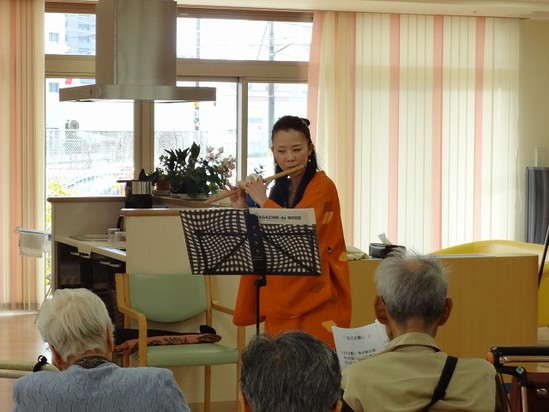 先日「篠笛」の演奏会がありました。とてもいい音色で皆さん聞き入っておられました。この笛の音色がとてもきれいで、どこか日本的というか、とっても懐かしいというか、心にしみる音色で私も思わず仕事の手を止めて聞き入ってしまいました。また定期的に演奏会を開催してくださるとのことで楽しみしています。