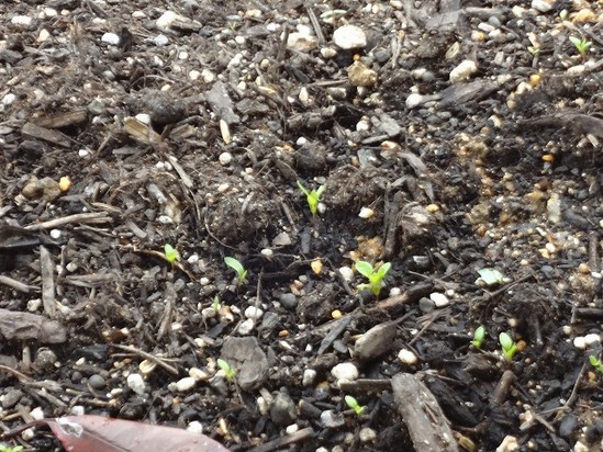少しでも昔を思い出してもらえたらという思いから自主的にスタッフが植えてくれたので、先日様子を見に行くとちっちゃい芽が出ていました。