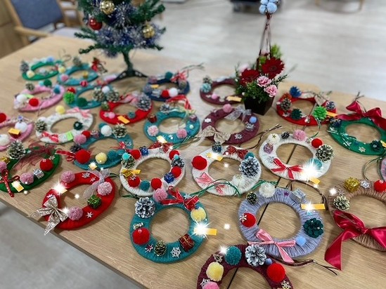 一つとして同じものがない…たくさんのクリスマスリース が完成いたしました