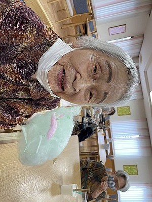 では 職員お手製の、ピンク・ブルー・イエローのカラフルな綿あめが並びます