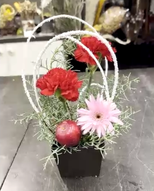 今年最後のフラワーアレンジメントは、皆様最後の利用日に