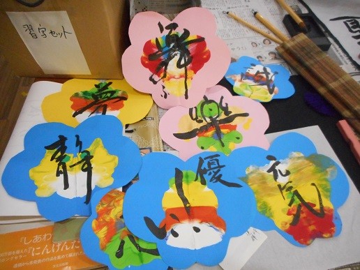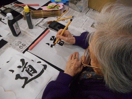 趣味活動では、お習字がお好きな方が集い、熱心に取り組まれていました。