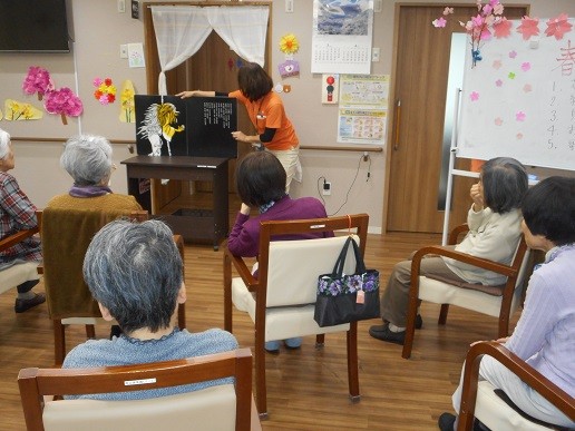 次は絵本を紙芝居のようにスタッフが読みました。春にちなんで・・・