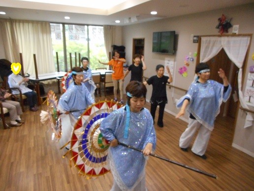今日は、傘踊りと銭太鼓です(^・^)