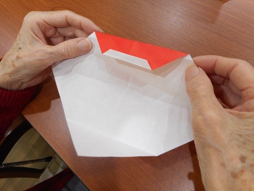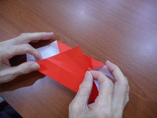 反対側も、三角に折っていきます。