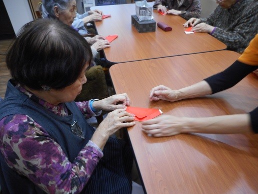 今日は、赤い折り紙を折っていきます(^^)