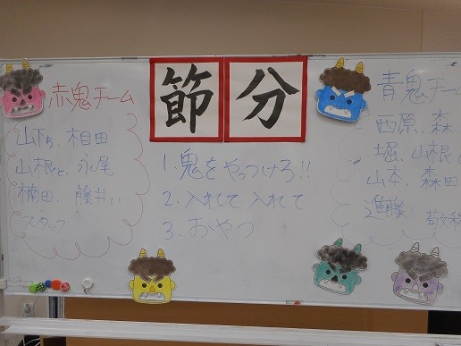 「節分が来るので、今日はお部屋に飾る鬼を作りましょうね。」