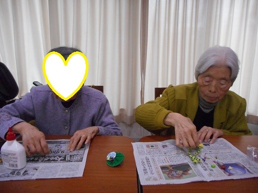 今週の手作業は、コサージュ作りをしました(^・^)