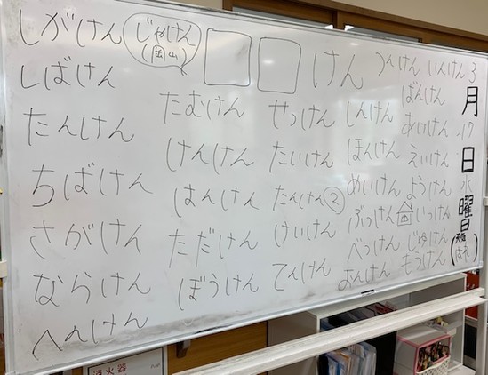 「しがかん」「さがけん」「ちばけん」「ならけん」など、少しずるい気もしましたが、こちらもどんどん言葉が出ており、頭の体操がしっかり出来ました