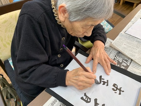 久しぶりに墨汁の香りを感じることが出来て、懐かしい気持ちになりました(*´ω`*)「先生で久しぶりだったら、私らは何十年ぶりじゃが~!!」と大盛り上がりでしたよ(*´ω`*)