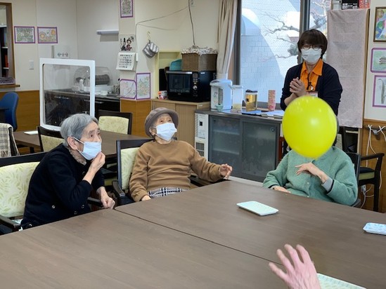 さて、クロセさん・サノさんが頑張って風船を膨らませてくれたので、おやつの後は皆さま大好きな風船バレーを実施しました