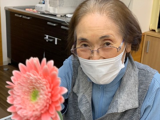 ご利用者さまの前にお花をお出しすると、