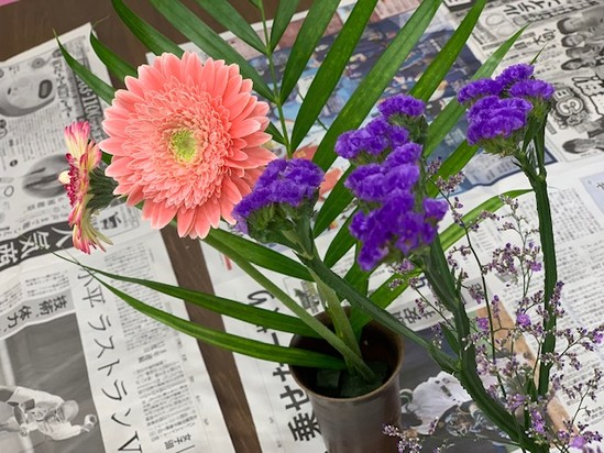 夏場は出来なかったフラワーアレンジメントを再開しました!!