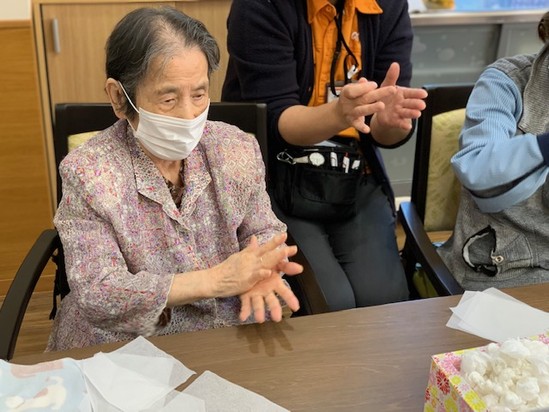 白いお花紙を、一生懸命丸めてくださっているYさま(*´ω`*)