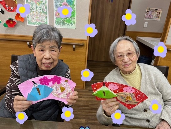 CさまとKさまが持たれているお雛様を皆さまと一緒に作りました