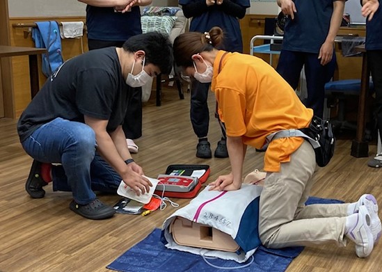 各施設の議題のあと、AEDを使用した実践研修を行いました。
