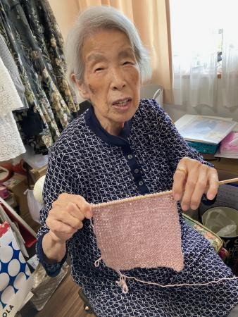 お孫さんへのプレゼントをご自身で編み物をされています。