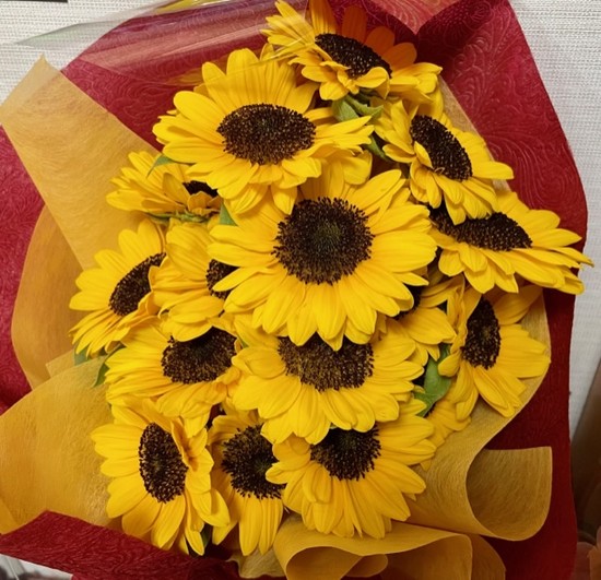 ひまわりの花束をプレゼントさせていただきました