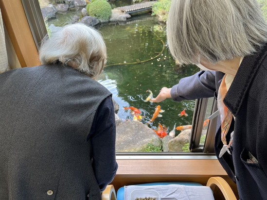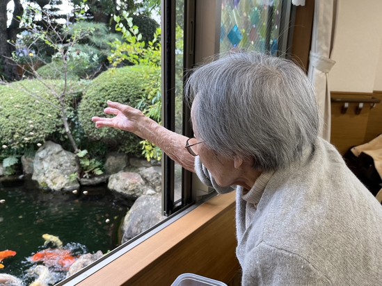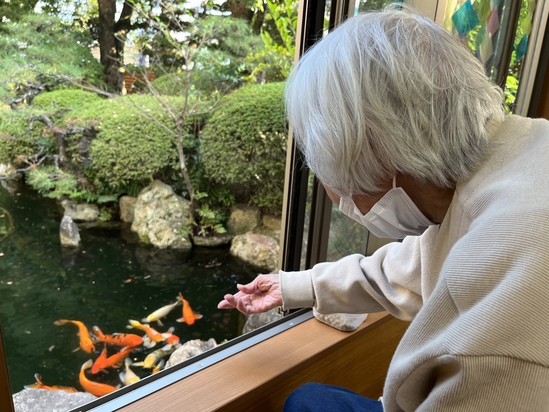こんなに身近に鯉と触れ合えるデイサービスは、