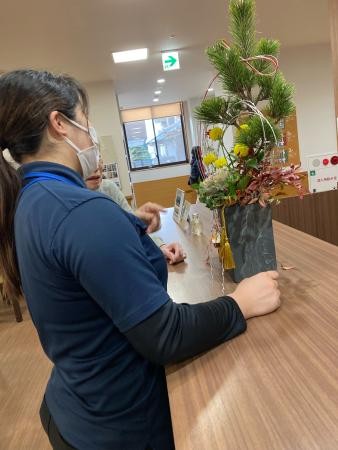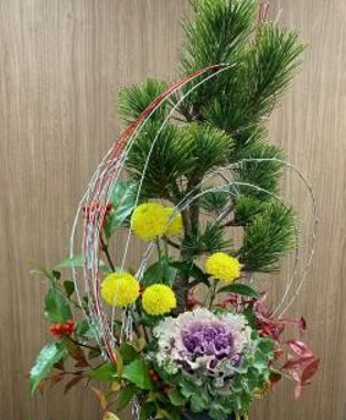 松に葉牡丹、菊、千両様々なお花があり、心が安らぎますね