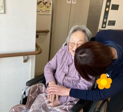 3階の廊下を歩いていたら本日デイサービスご利用日のK様の送迎に遭遇しました。