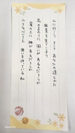 拙筆ですが、便せんに書いてお渡ししてみました