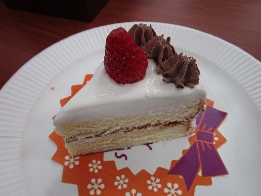 こちらのテーブルではスタッフと一緒にスポンジケーキにトッピングをしてますね。どんなケーキができるのでしょうか