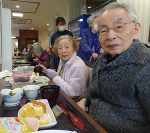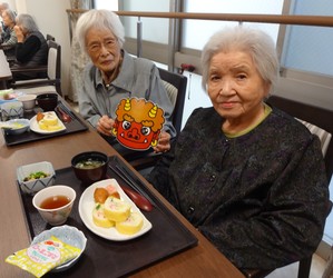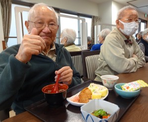 昼食は卵巻といなり寿司、切昆布煮、お蕎麦椀、節分ボーロでした。