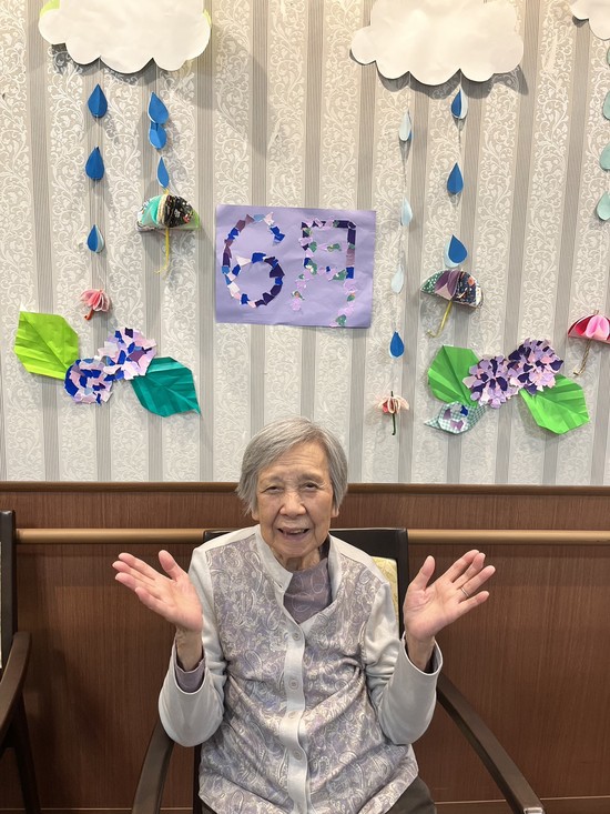 6月の梅雨の壁面、写真スポットの前で写真撮影をしました