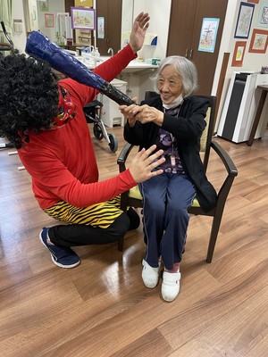 ご利用者様、皆で一生懸命鬼に豆を投げます。