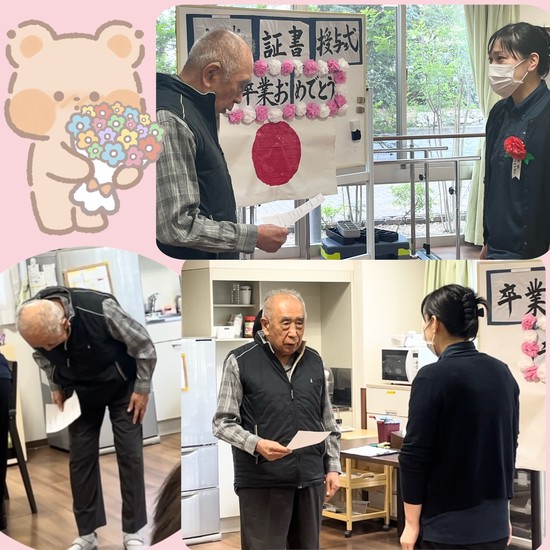 利用者様のご協力のもと、とても感動的な卒業式を開催することができました。