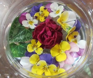「花手水(はなちょうず)」とは、神社や寺の参拝前に手や身を清める手水舎(ちょうずや・てみずや)にある手水鉢(ちょうずばち)の中に花を浮かべたもののことです。