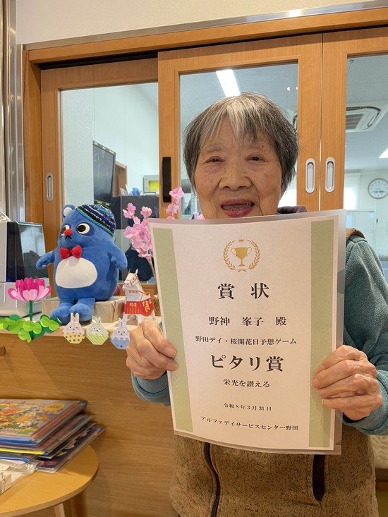 さて、野田のデイサービスセンターでは利用者の皆様に岡山の桜はいつ開花するんだろうというのを予想するゲームを開催しました。岡山後楽園の標本木の開花宣言の日を当てるというものですが、3月後半になるにつれ今か今かと待ち遠しくなってきます(笑)