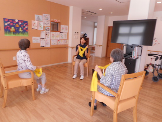 個別だけではなく、全体体操も実施しています。