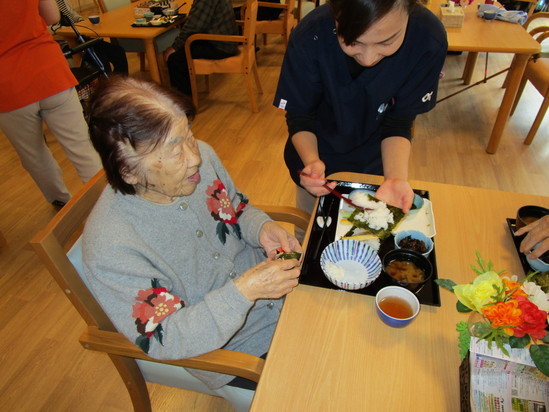 今まで手の動きが悪かった方も目の前のお寿司にしっかり手を伸ばされ