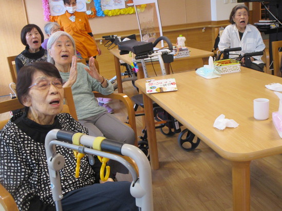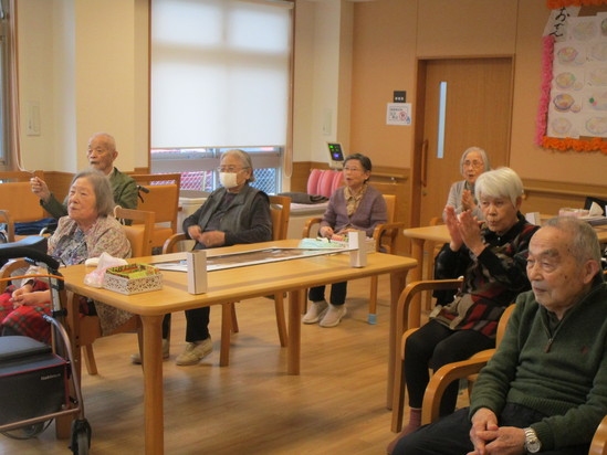 いつもは利用者の皆さんに歌って頂くのが中心ですが、