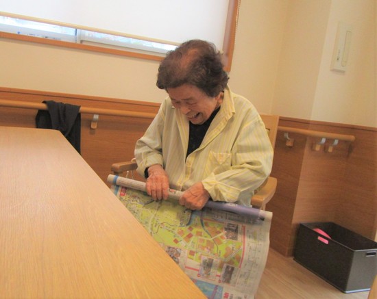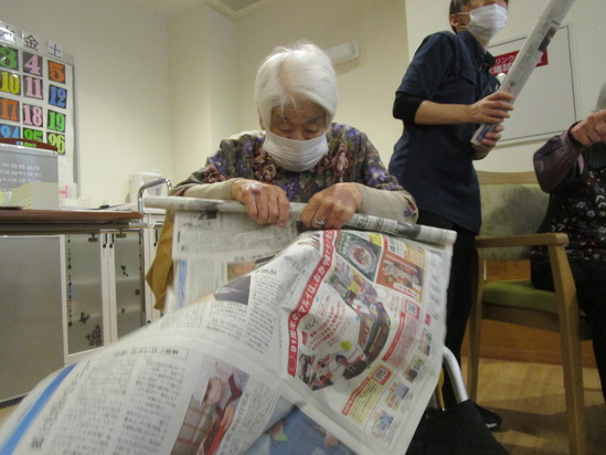 今日は新聞を使ってのレクリエーションです。