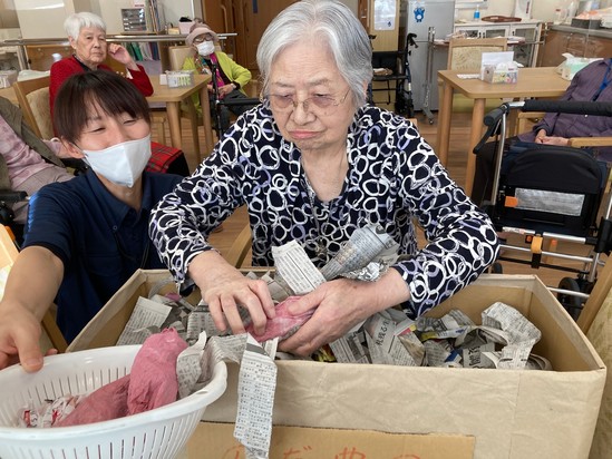 今日のレクリエーションは、お芋や栗を収穫するレクリエーションです。