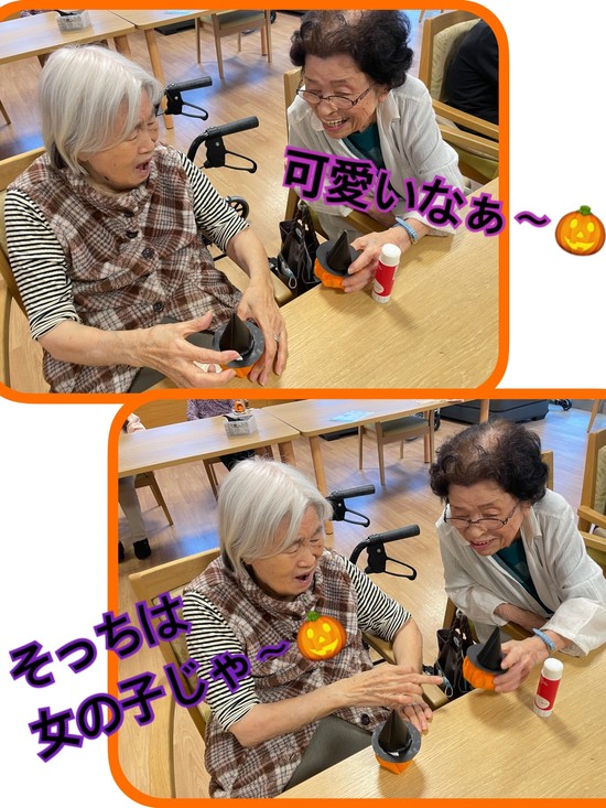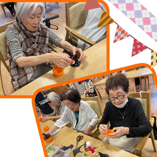 デイサービスでもハロウィンにまつわるカボチャの置物を作りました