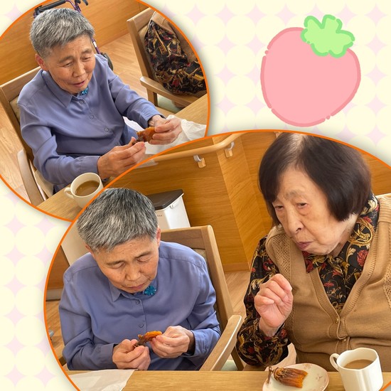 アルファデイサービスセンター野田です。 10月末に作った吊るし柿が食べごろを迎え