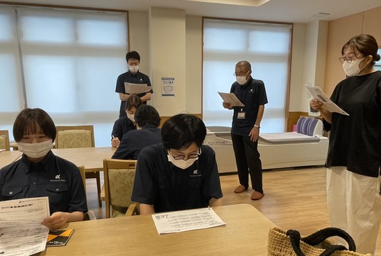 先日、岡山エリア4施設合同でBCP(事業継続計画)研修を行いました。