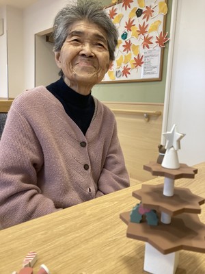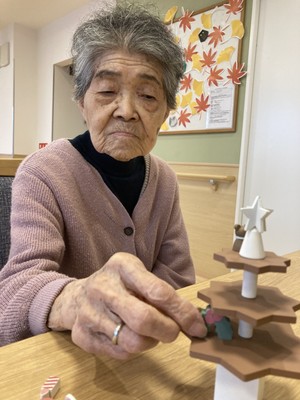 本日は小さなツクリスマスツリーを入居者様と飾りました
