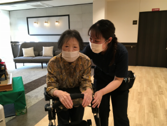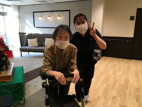 普段は車いすで過ごされている利用者様ですが、先日歩行器でのリハビリが開始になりました!