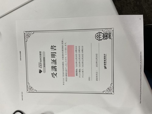 最後にテストも何問か受け、受講証明書も発行していただきました