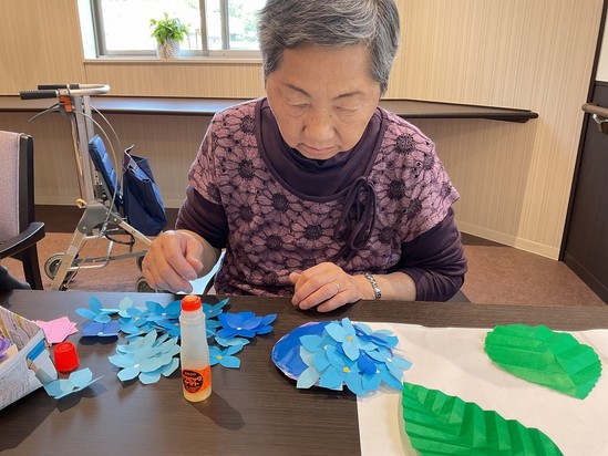 ご入居されているみなさまと6月の壁面装飾作りを楽しみました
