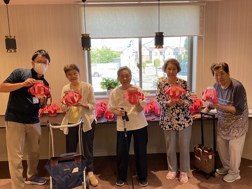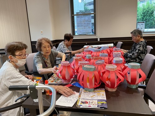 ご入居者様が丁寧に提灯づくりをしてくださいました
