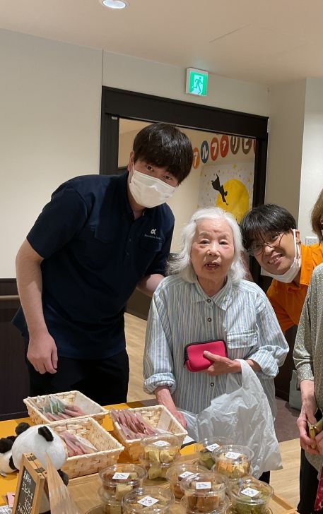 2025年07月28日(月) 美味しいお菓子を求めて 7月21日(月)に 茨木市より 「毎日、おやつ u 茨木市のやさしい米粉の焼き菓子のお店」さん が移動販売としてアルファリビング吹田千里丘に来てくれました。 バームクーヘンやクッキーを販売しており 「柔らかくて食べやすそう」 と 喜んで購入されていました。 スィーツを食べながらの音楽鑑賞会模様と同時掲載となります余談になるのですが写真に写っている職員二人は袋いっぱい買っていました