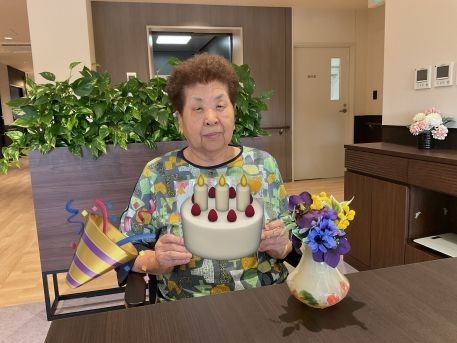 2025年09月02日(火) 入居者様のお誕生日 こんにちわ アルファリビング吹田千里丘です。 先日、お誕生日を迎えられた利用者様がいらっしゃいます いつも元気をいただいています素敵な一年になりますように
