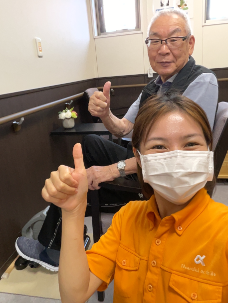 2025年10月10日(金) 楽しそう‼ こんちにはブログをご覧いただきありがとうございます アルファリビング吹田千里丘は今日も笑顔があふれています 入居者様とスタッフのピースとgoodの ポーズです ご見学の皆様吹田千里丘チームは笑顔でお迎えいたします♡♡