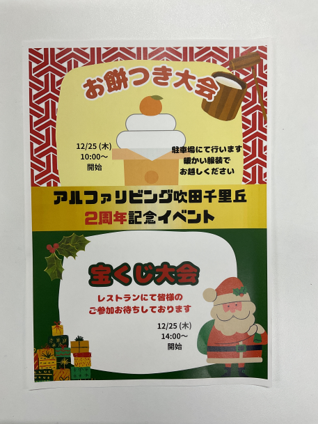 アルファリビング吹田千里丘2周年記念&クリスマス会を開催します
